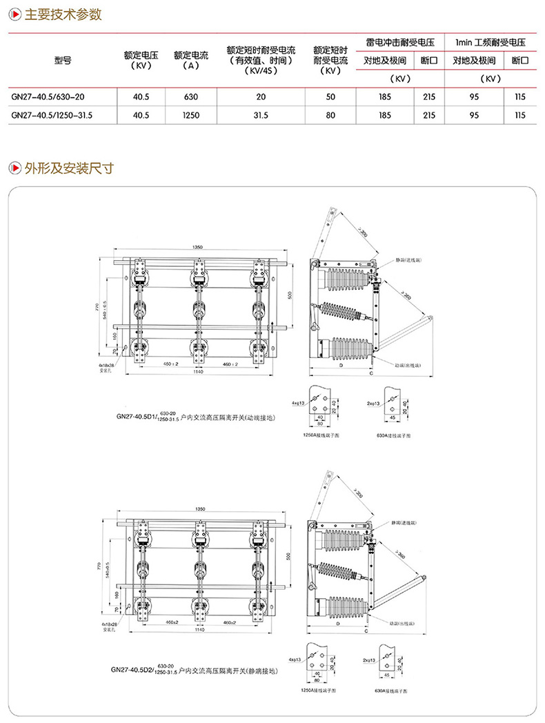 GN27-40.5型户内交流高压隔离开关,是三相交流50Hz的高压开关设备,用于电压35Kv的电力系统中,作为有电压无负载的倩况下分、合电路之用。配用CS6-2手动型操动机构或CX6电动机构。