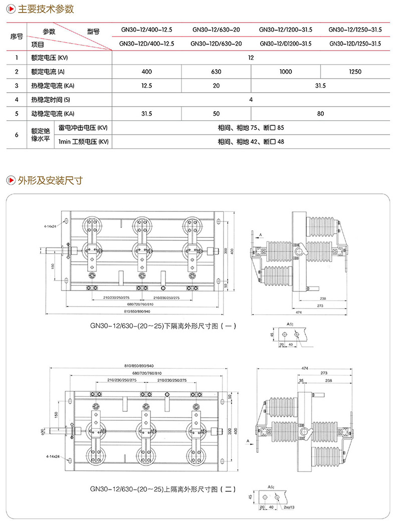 GN30-12D型户内旋转式高压隔离开关是在GN30-12型户内旋转式高压隔离开关基础上增加带接刀的形式,可满足不同电力系统的需要。本产品设计紧凑、占用空间小、绝缘能力强、易于安装调整,其性能符合GB1985-89《交流高压隔离开关和接地开关》的要求,适用于额定电压10千伏交流50Hz以下户内系统中,作为在有电压无负载情况下,分合电路之用。可与高压开关柜配套使用,也可单独使用。